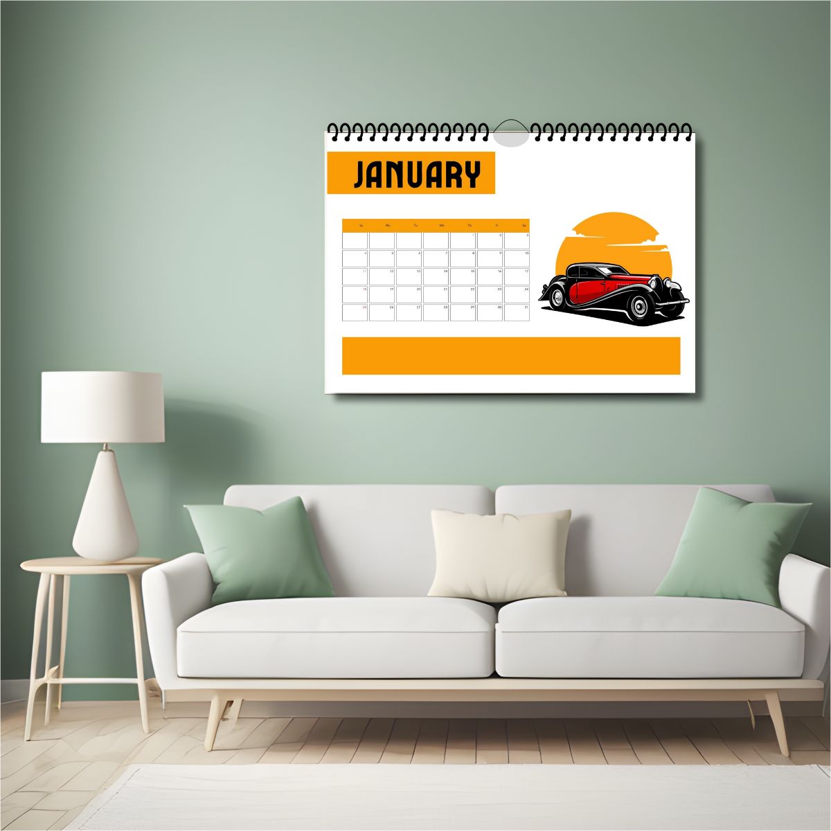 Add a bold and stylish touch to your space with this **2026 Wall Calendar** featuring **modern orange car illustrations** in a clean **landscape layout**. Perfect for car lovers, modern homes, offices, and garages, this calendar brings energy and elegance to your wall.