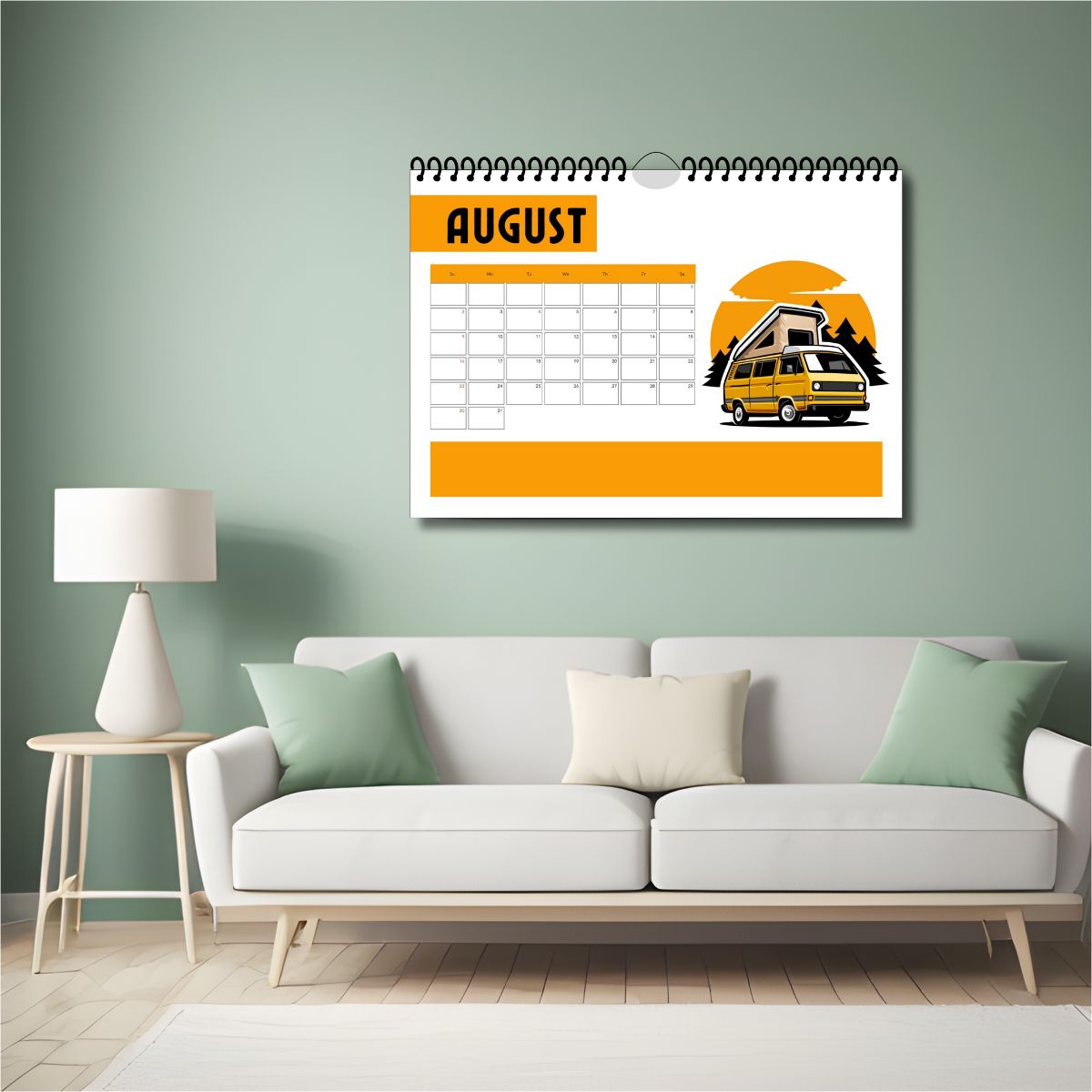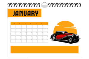 2026 Modern Wall Calendar – Orange Color Car Illustration | Landscape | Digital Download