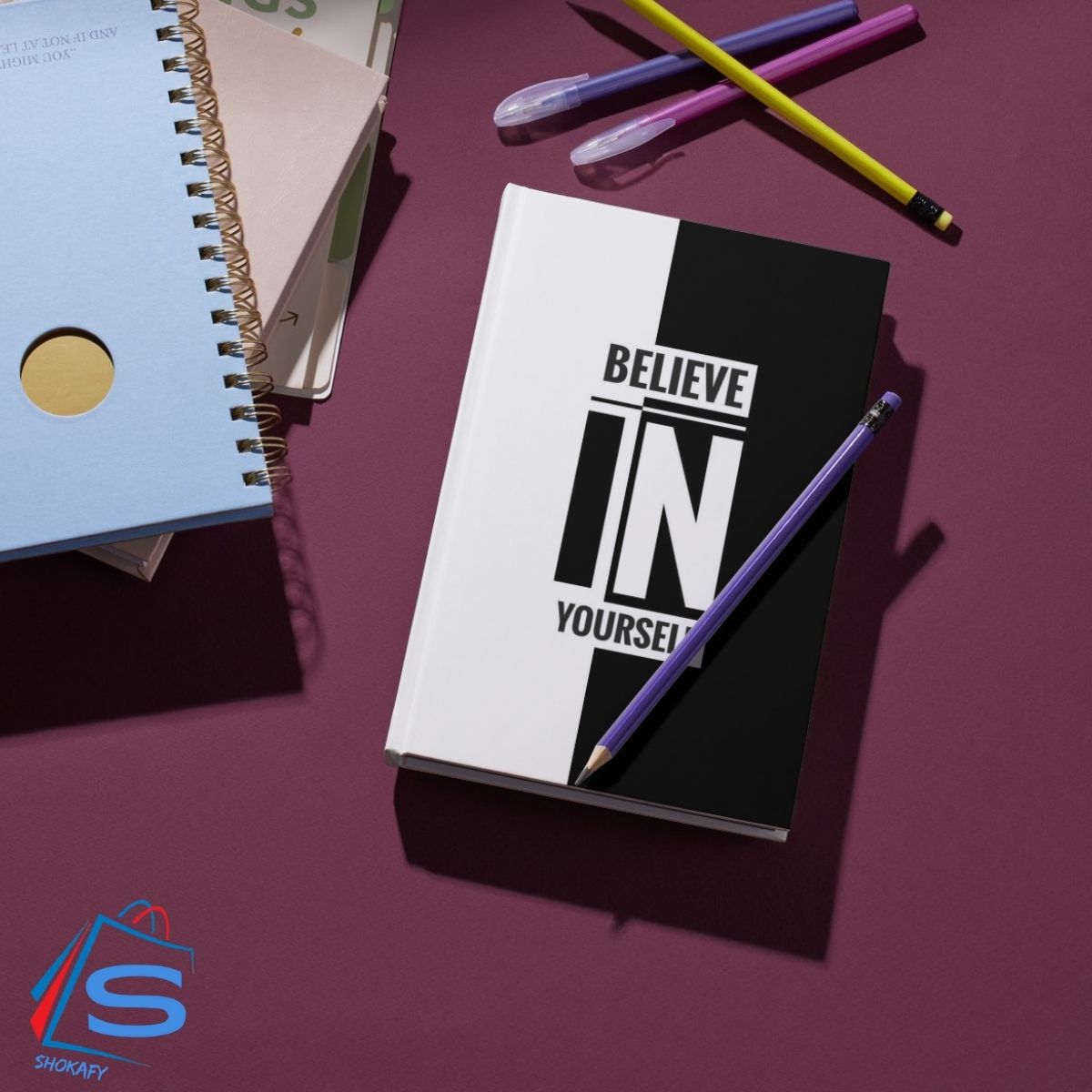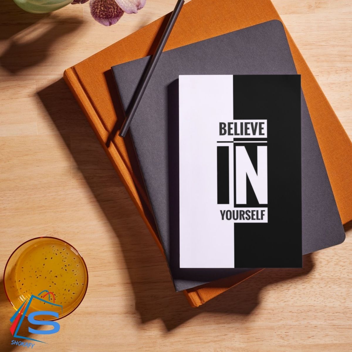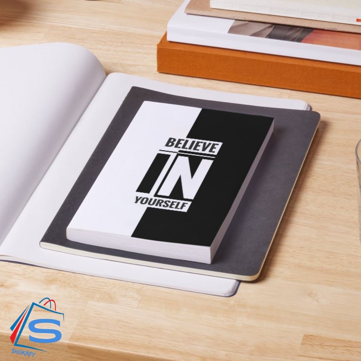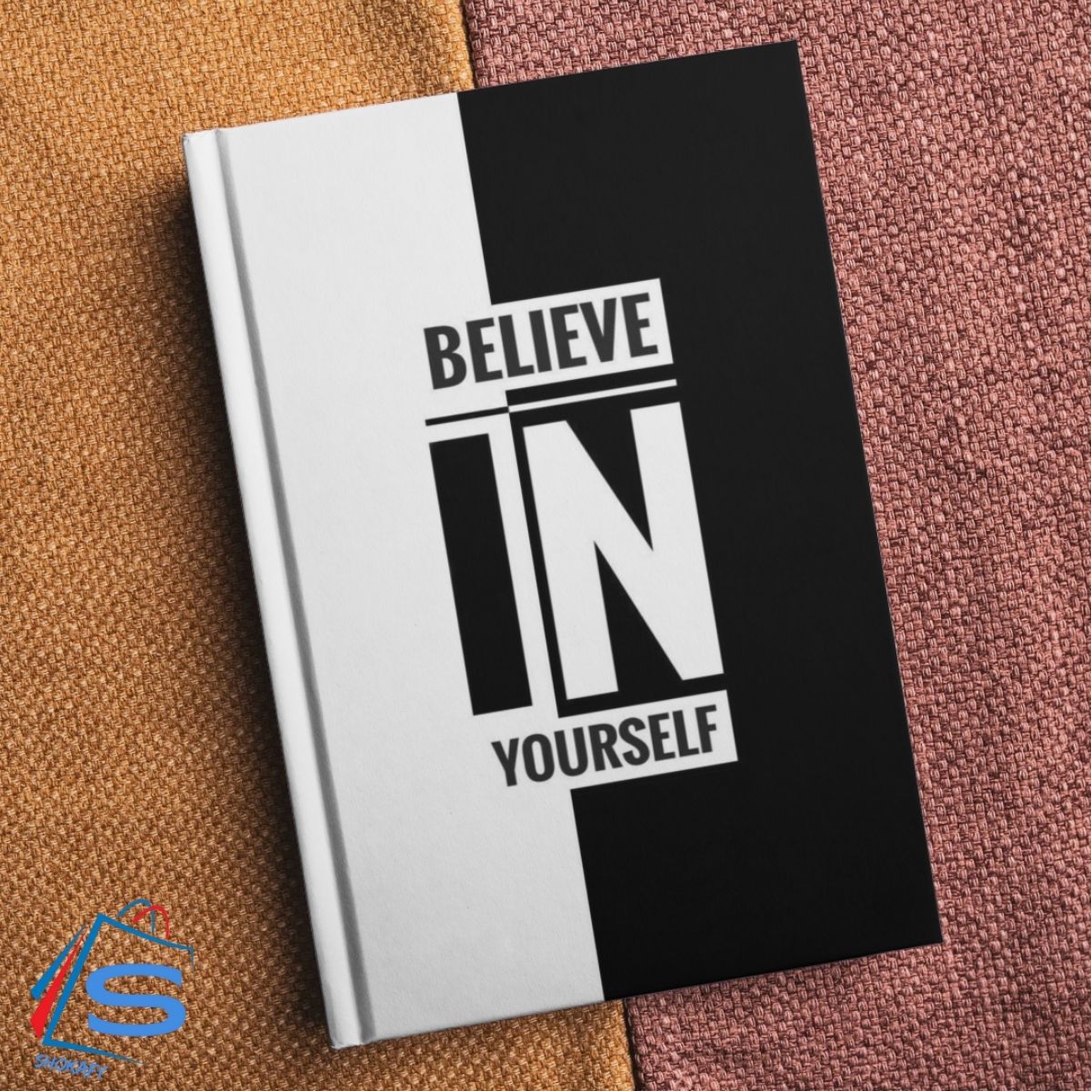 “BELIEVE IN YOURSELF” prominently displayed. The text is arranged in three lines, with “BELIEVE” at the top, “IN” in the middle, and “YOURSELF” at the bottom. Notably, the word “IN” is larger than the other two words.
