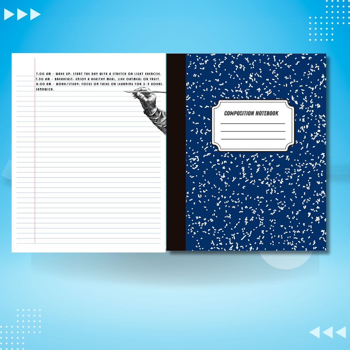 Pen+Gear Composition Book, College Ruled, 7.5″x 9.75″, Dark Blue Marble Design, Paper Cover,
