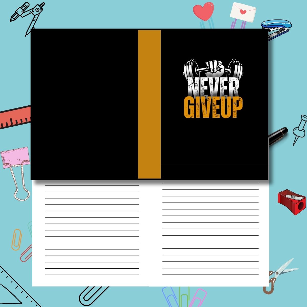 This ‘Never Give Up’ notebook is a game-changer! The bold design with the barbell and inspiring text motivates me every time I open it. Perfect for my gym notes!”