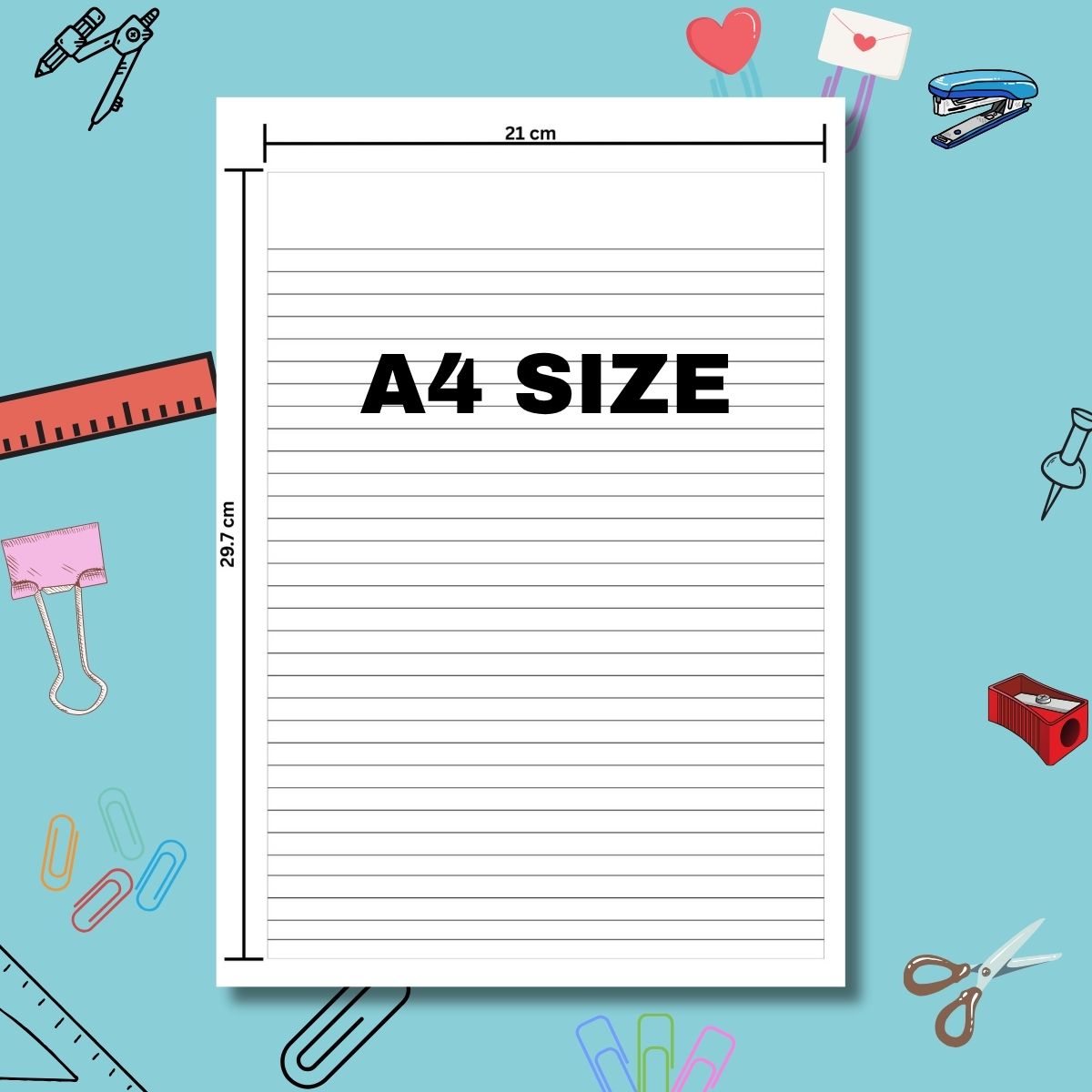 This A4-sized lined paper features 8mm line spacing, perfect for writing, note-taking, or journaling. The collection comes in 9 different colors, each with its own unique charm: